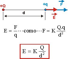 Da mesma forma, a carga elétrica q produz um campo eletrico que age sobre Q. A intensidade do campo elétrico gerado por uma carga Q pode ser calculada pela equação: